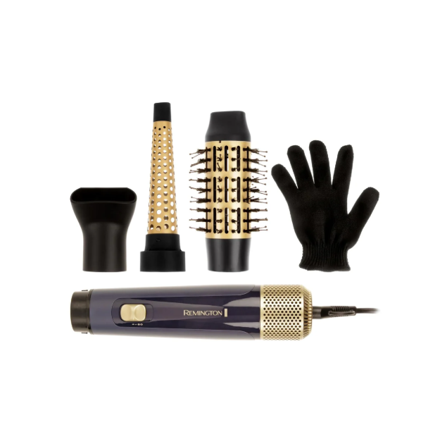 - Con su sofisticada combinación de colores azul marino y detalles en champán, el cepillo de aire y multiestilizador Remington Sapphire Luxe es una declaración de estilo