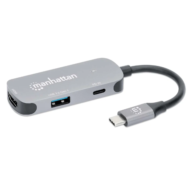 • Conecta fácilmente un dispositivo USB-C a una pantalla HDMI y a un periférico USB-A, al mismo tiempo que carga ambos dispositivos USB.