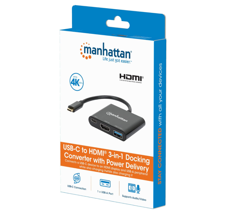 CONVERTIDOR DE ACOPLAMIENTO USB-C A HDMI 3 EN 1 MANHATTAN 130622 (RO)