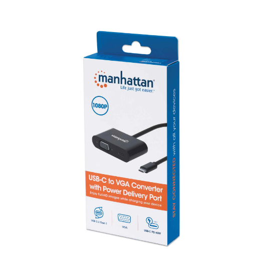 CONVERTIDOR USB-C A VGA CON PUERTO PD MANHATTAN 153430 (RO)