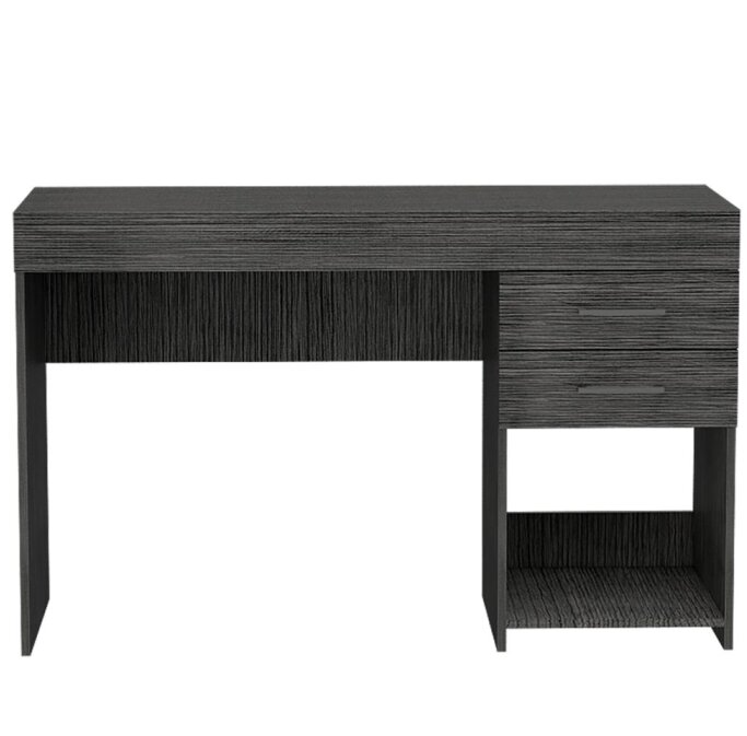 - Tiene dos cajones y cuenta con una amplia superficie de trabajo. *La foto de este producto ha sido ambientada, por lo cual no incluye ningún adorno, ni accesorios, ni piezas adicionales ni ningún otro elemento que lo acompañan. El color presentado en la fotografía es una aproximación al color real.