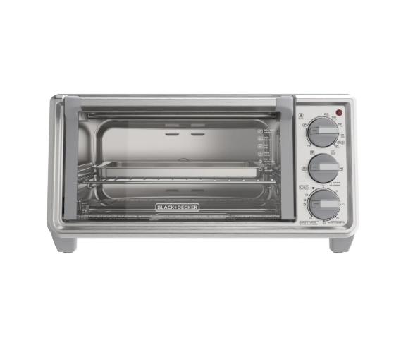 - El Horno Eléctrico Tostador TO4130-1SDLA de Black & Decker presenta un diseño elegante en color gris metálico, ideal para cualquier cocina contemporánea