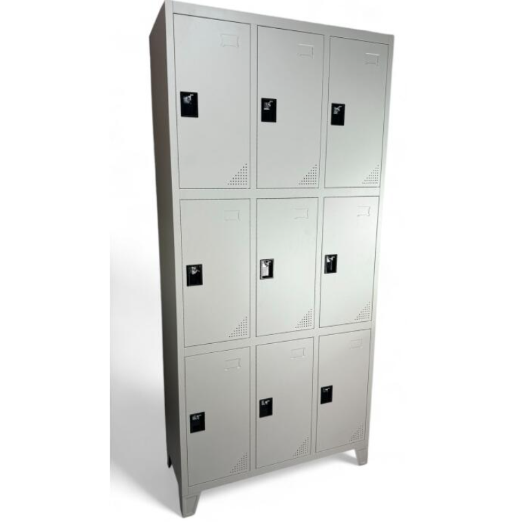 • Cuenta con 9 compartimientos individuales, cada uno con aldaba metálica para colocar candado.