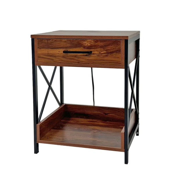 - Dale un toque funcional y elegante a tus espacios con esta mesa auxiliar de diseño rústico
