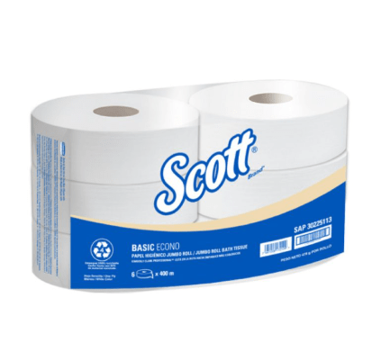 El papel higiénico Scott® Basic™ es ideal para aquellos clientes que buscan una opción de higiene íntima de alto rendimiento para establecimiento de alto tráfico.