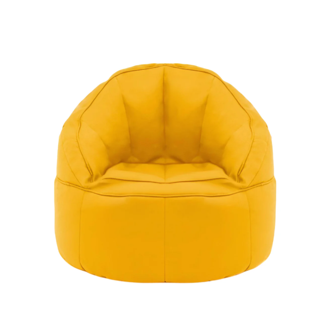 • Sillón individual Puff LOUNGER con diseño semicircular que se amolda al cuerpo gracias a su relleno de perlas de unicel