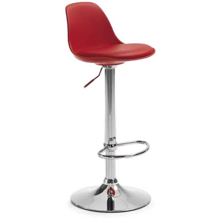 - Este exclusivo taburete de bar en rojo puede ajustarse en altura gracias a su mecanismo de elevación de gas.