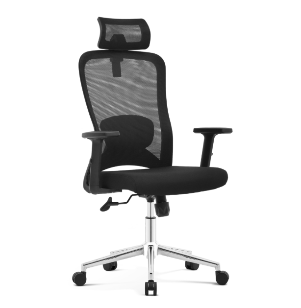 • Respaldar alto de malla con soporte lumbar ajustable en altura