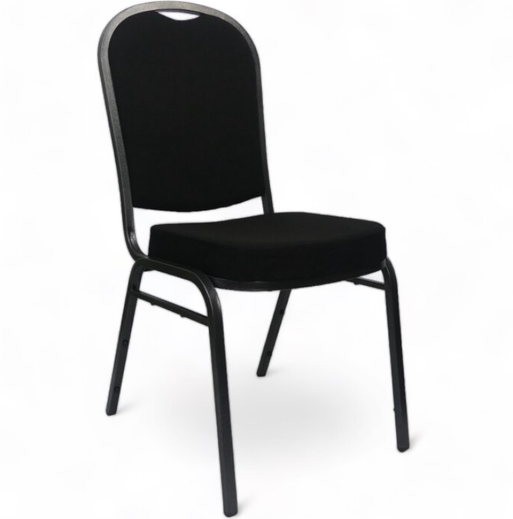 • Protectores de parachoques de plástico negro para proteger la silla cuando se apilan.