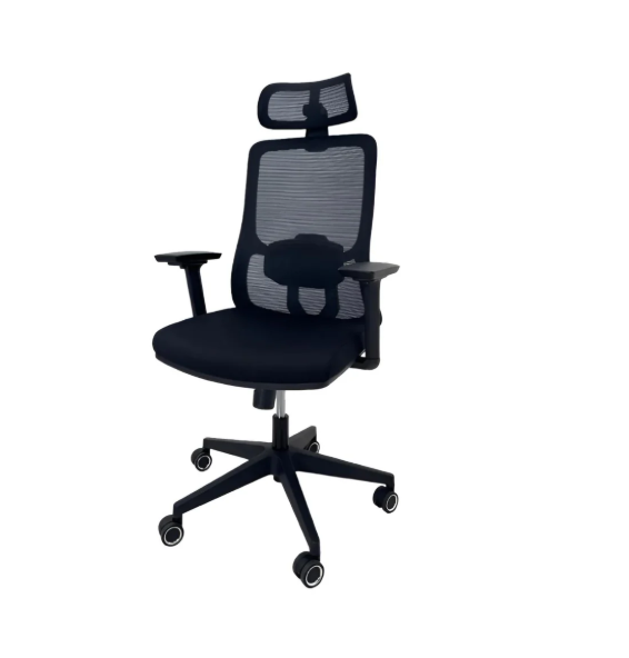 - Fabricada en malla negra transpirable, esta silla favorece la circulación del aire y evita el calor excesivo. Su base de nailon de alta resistencia y sus 5 rodines aseguran un desplazamiento fluido y estable en cualquier superficie