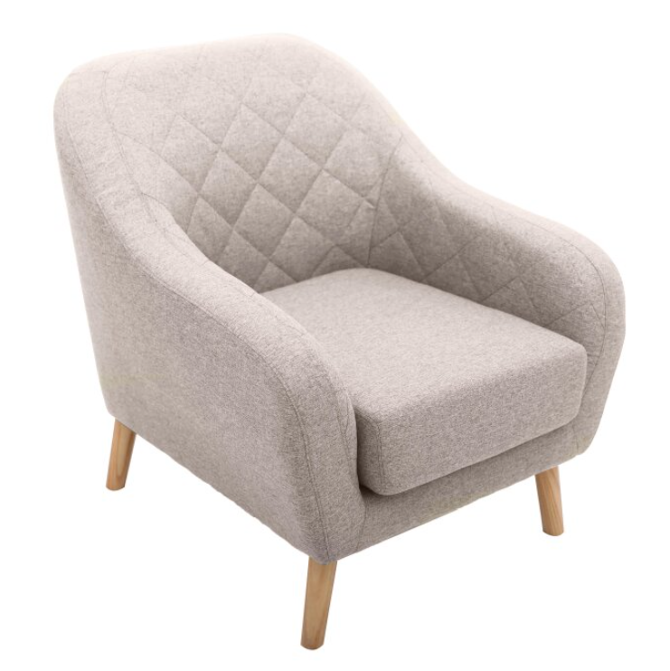 - Fabricado con tela, espuma y madera.